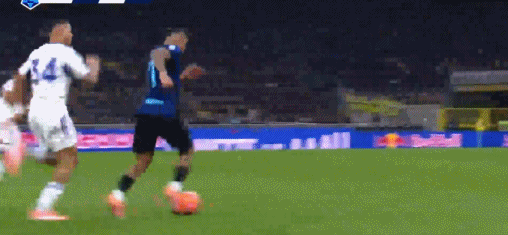 第45+2分钟,迭戈-卡洛斯拽倒小图拉姆后又踢倒劳塔罗,裁判出示黄牌