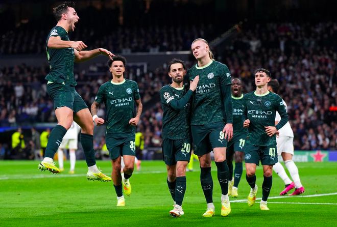 哈兰德操刀,骗过库尔图瓦,将球打进,曼城只用了4次射门,就完成了比分的反超。